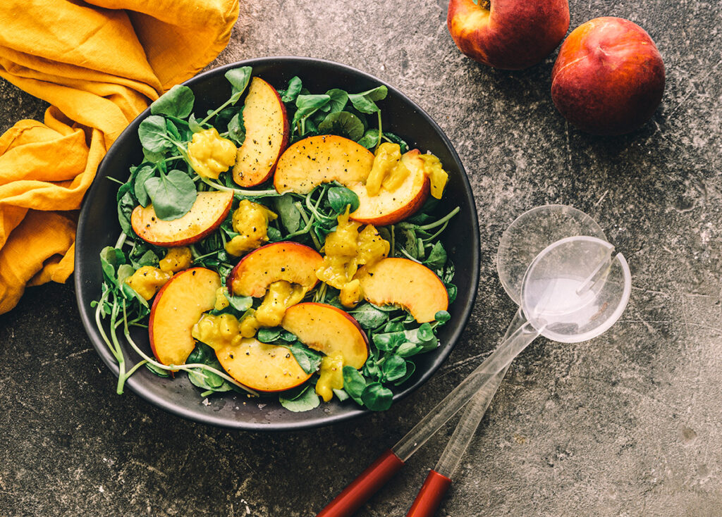 The secret to nailing this salad is to patiently wait until peaches are in season to make it. Bookmark it for summer – that’s when you’ll find the ripest, juiciest peaches! For more tips on how to align your cooking with the seasons, check out our beginner’s guide.