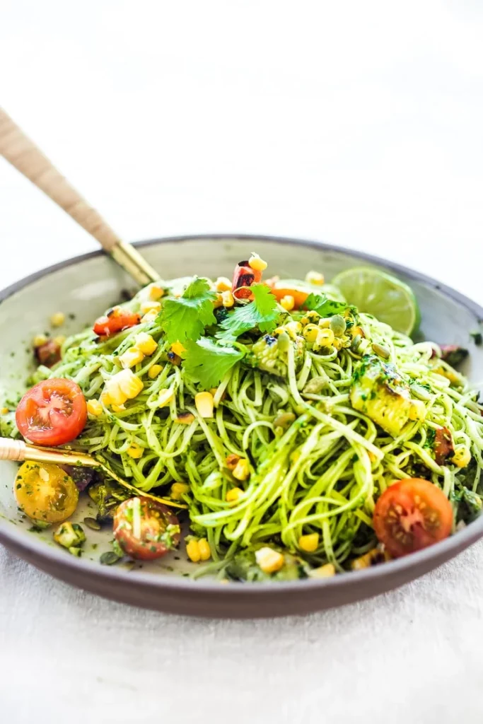 20. Summer Pasta Salad with Grilled Zucchini, Corn and Coriander Pesto